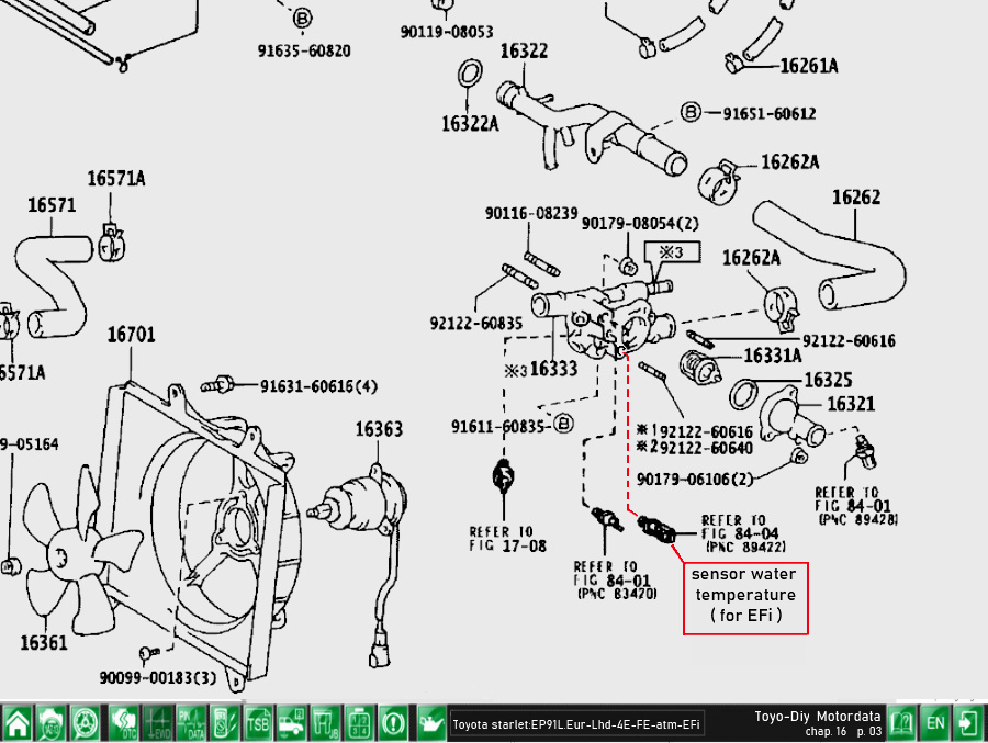 Mijn Starlet p9. 1998 geeft code 22 aan , ik wil de koelvloeistof sensor vervangen, het is 'n groene met maar 1 aansluit pin en dus ook maar 1 kabeltje. sleutel maat 17 , ik kan die bij de gangbare auto onderdelen sites niet vinden , heeft iemand 'n idee waar die verkrijgbaar is.