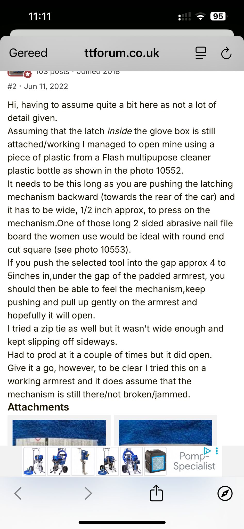 Ik heb het open gekregen zoals ik op een Engelse site vond — zie foto’s hieronder. Ik heb daarvoor een nagelvijl gebruikt. Het is me alleen nog niet gelukt om de deksel verder los te krijgen zodat ik kan zien waarom het vergrendelingsmechanisme vastzit (lam is). Heeft iemand hier nog een oplossing of tip?