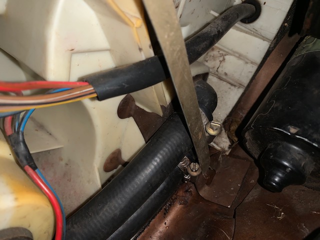 in de koelvloeistof toevoer slang, dichtbij de kachel radiateur,