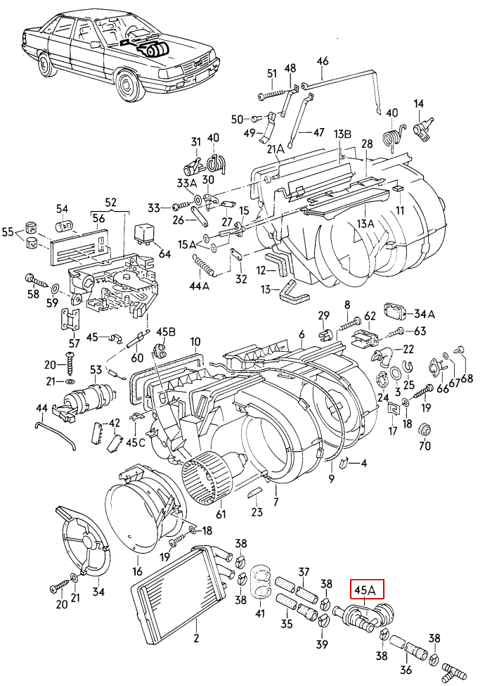 de complete heater box dient dan uitgebouwd te worden om de kachel radiateur