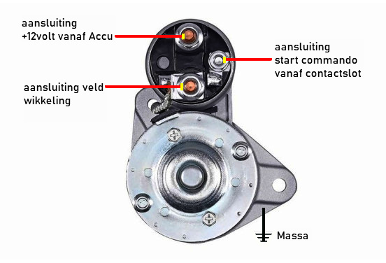 kabels weer aan sluiten op de startmotor,