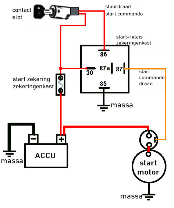 Accu vol geladen, maar nog steeds het zelfde. Vermoed dat de commando draad van contactslot naar startmotor een breuk of geen goed contact maakt.
