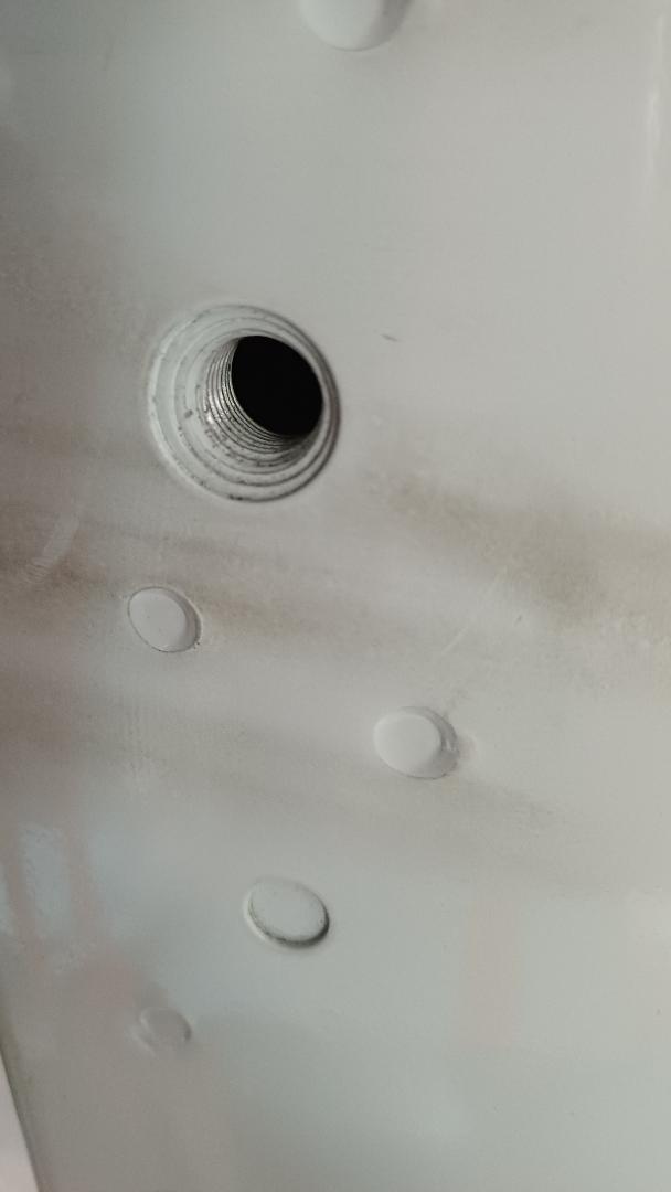 Het gat met draad zit links en rechts in de stijl. Het is een af-fabriek boutgat, niet een later geplaatste rivet.