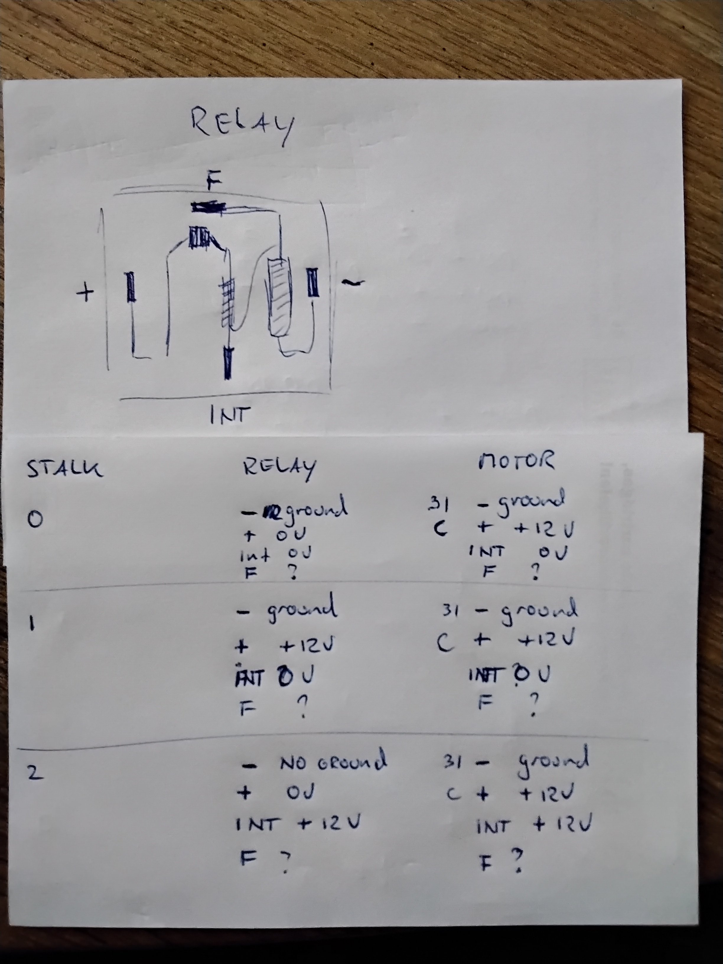Ik snap werking van de schakeling niet dus ik weet niet waar ik moet meten om te testen of het aan motor of bekabeling ligt.