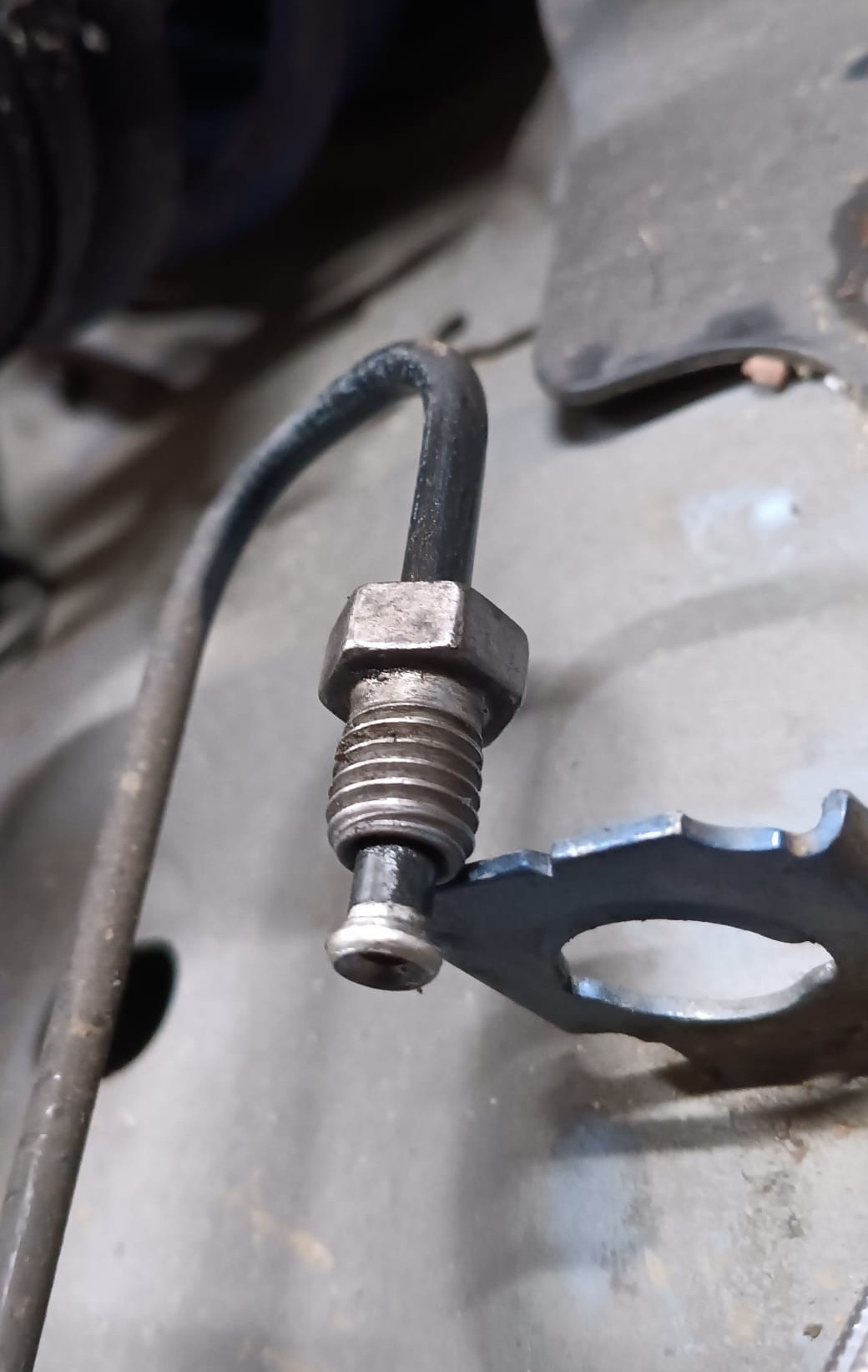 Echter past er hier geen M10x1.0 female op want het blijkt dat de nippel grover draad heeft.