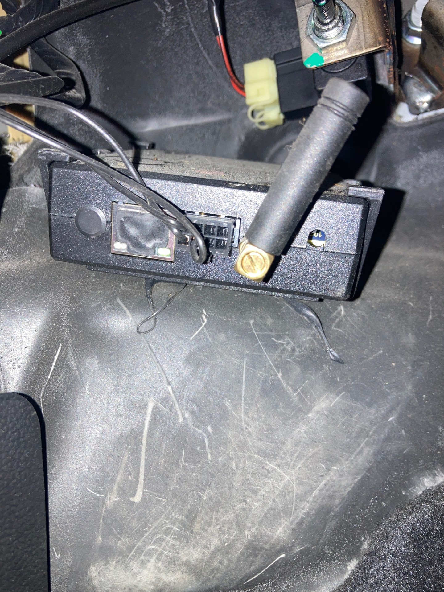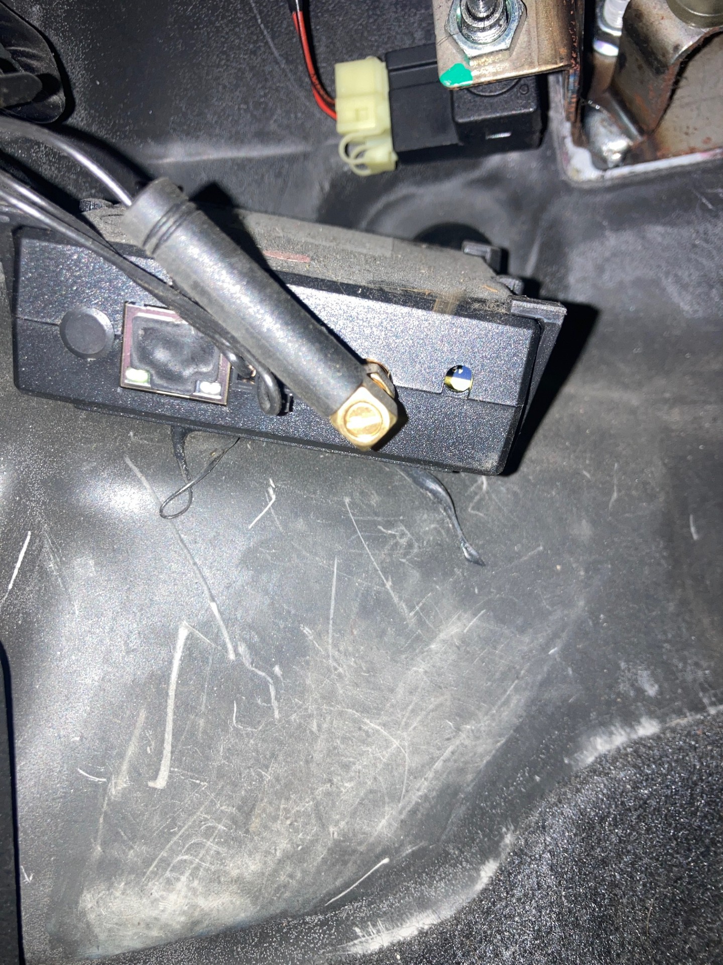 Kan iemand vertellen wat dit voor kastje is. Er zitten twee ledlampjes op die aan en uit gaan en een hevel die van links naar rechts gezet kan worden. Het zit onder het dashboard boven de pedalen.