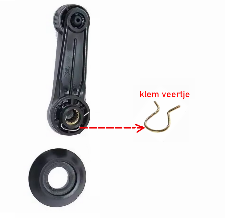 heen en weer trekken totdat het klemveertje en de raamslinger los komt,