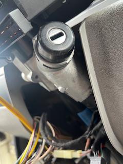 Het contactslot van deze vw LT 28 uit 1998 werkt niet goed. Met de normale sleutel gaat alleen het stuurslot eraf. de reservesleutel werkt soms wel.